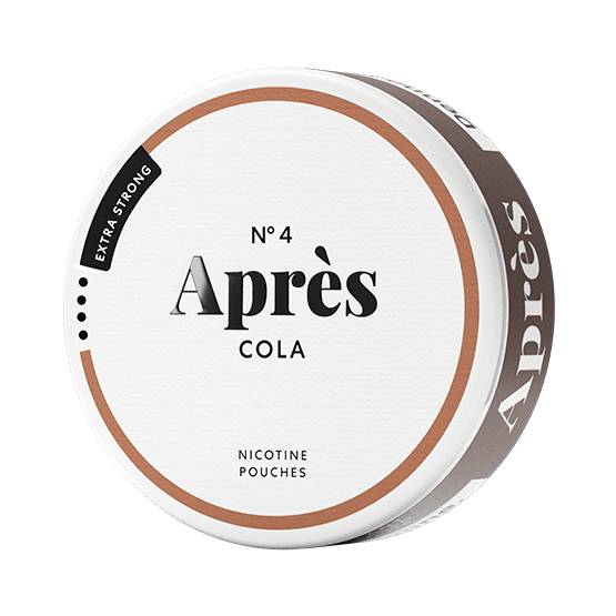 Experience the nostalgic taste of classic cola with Après No.4 Cola Extra Strong. These slim, all-white, tobacco-free nicotine pouches deliver a sweet and refreshing cola flavor, offering a satisfying experience for those seeking a familiar taste. Crafted in Stockholm, Sweden, by Après Nicotine AB, each pouch contains 8.3 mg of nicotine, providing an extra strong kick suitable for experienced users. The slim format ensures a discreet and comfortable fit under the lip, making it ideal for use anytime, anywhere.