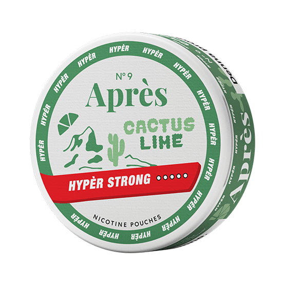 Experience the bold fusion of cactus and zesty lime with No.9 Après Cactus Lime Hypèr Strong. These slim, tobacco-free pouches deliver a robust nicotine kick of 11 mg per pouch (20 mg/g), providing a satisfying and discreet experience for seasoned users.